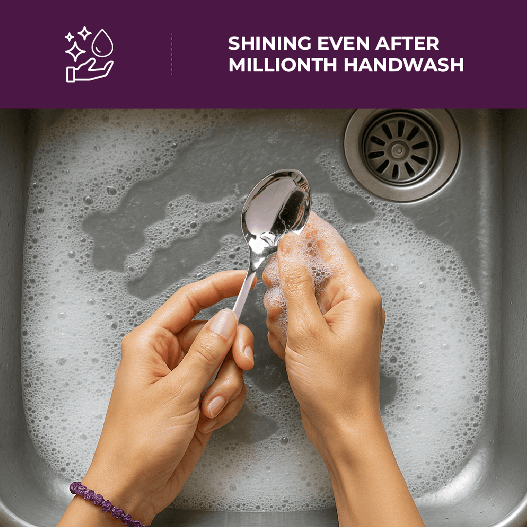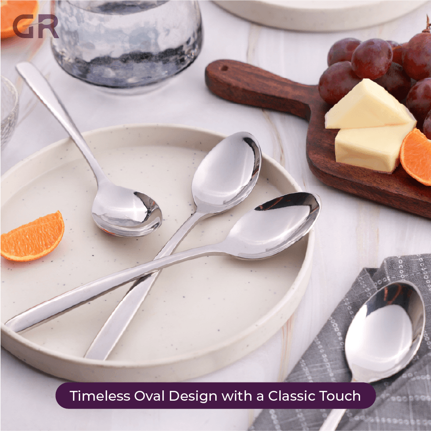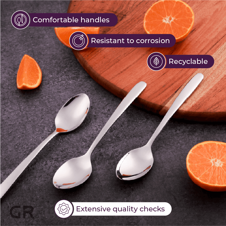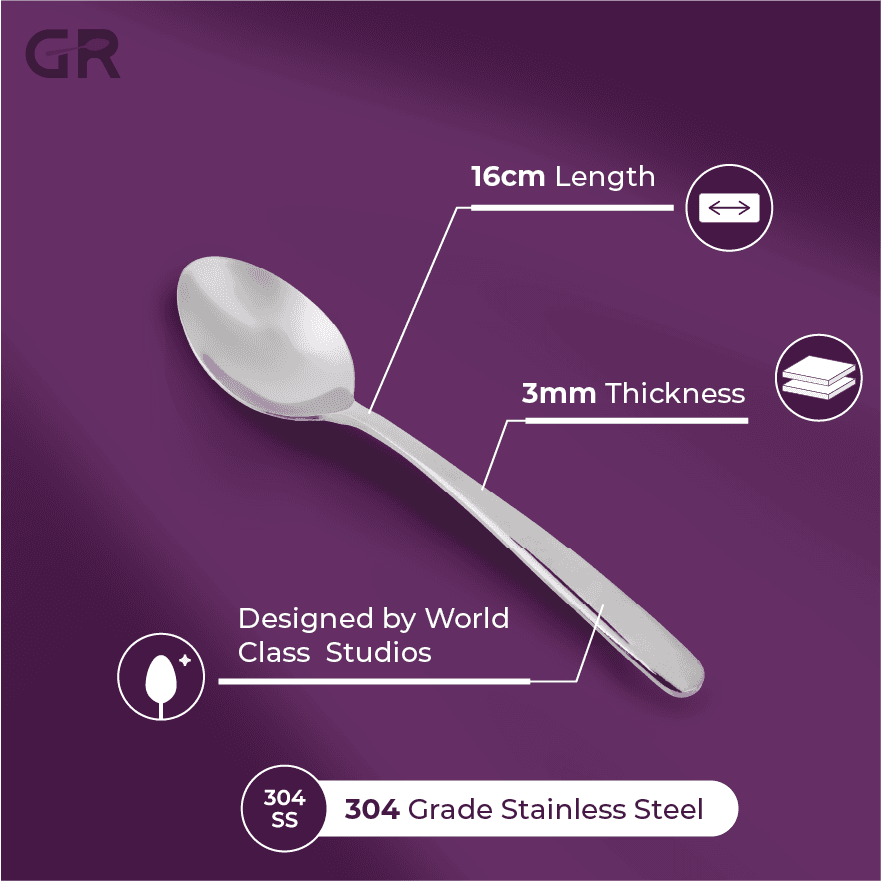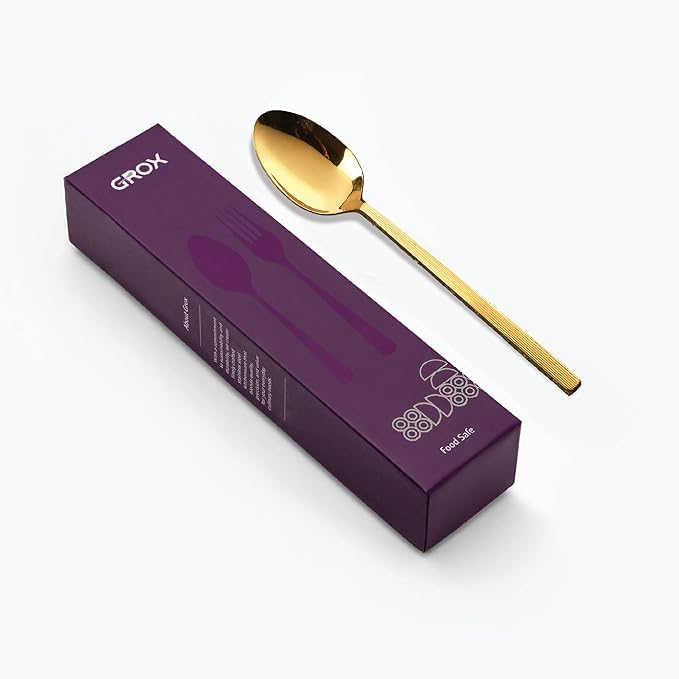 GROX Stainless Steel Premium Sleek Spoon (Gold) - Large - Set of 6 (19 cm)