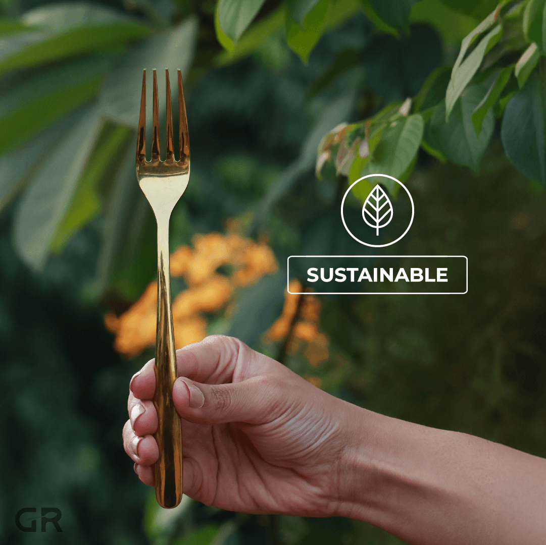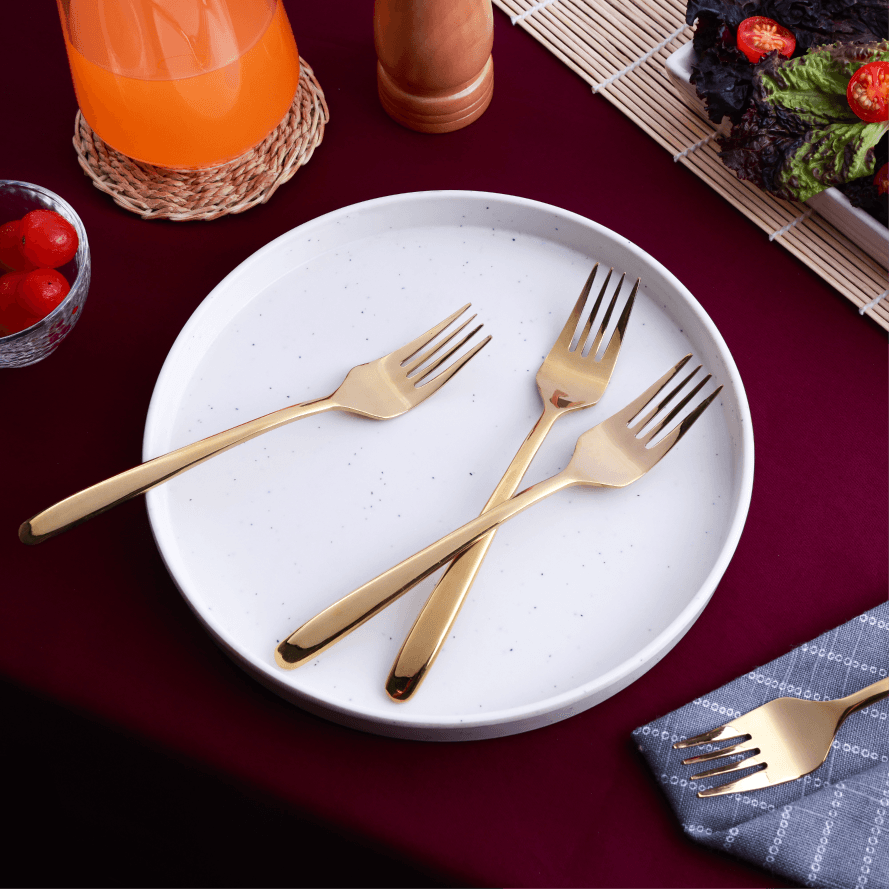 GROX Stainless Steel Premium Sleek Fork (Gold) - Regular - Set of 6 (15 cm)