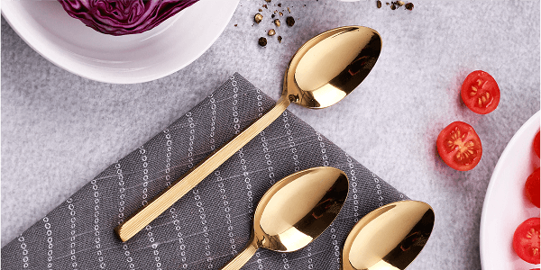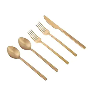 GROX Stainless Steel Sleek Prime Cutlery Kit (Gold) - Set of 2 Spoons, 2 Forks and 1 Butter Knife